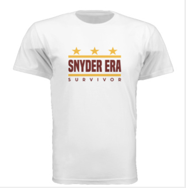 Snyder Era Survivor T-shirt White$19.99 Home / T-shirts / Snyder Era Survivor T-shirt White Size Choose an optionSMLXL2XL3XL4XLClear Snyder Era Survivor T-shirt White quantity — OR — Add to cart SKU: N/A Category: T-shirts Additional information Additional information Size S, M, L, XL, 2XL, 3XL, 4XL Related products Burgundy Snyder Era Survivor T-shirt $20.99 Select options WFT Throwback Short Sleeve Cotton T-shirt $25.99 Select options WSH Tank Top Black $19.99 Select options WSH Short Sleeve T-shirt Burgundy $22.99 Select options